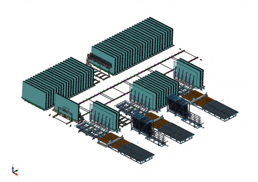 The sorting system is used for glass storage and sorting before edging line,tempering furnace,IG line and laminated line.To make more reasonable,energy saving and high efficient production line.