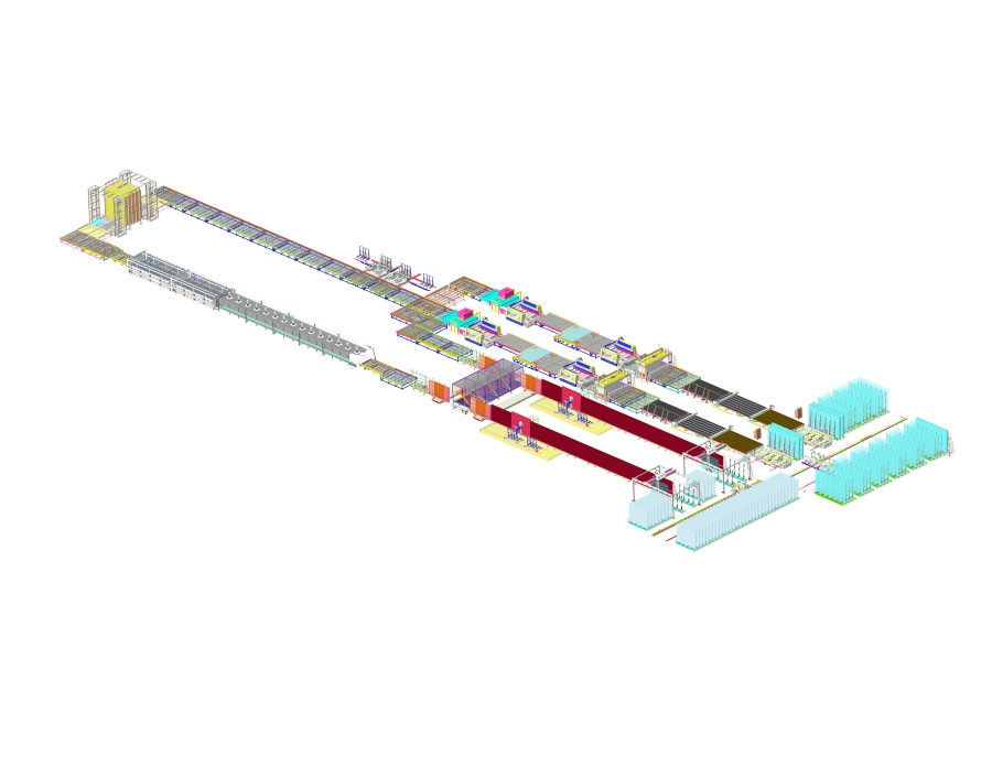 產(chǎn)品說明: 智能原片穿梭倉儲--激光打碼--切割機--水平理片臺--雙邊磨--清洗機--臥式理片系統(tǒng)-- 鋼化爐--立式理片系統(tǒng)--中空線--龍門中空下片--中空成品倉儲 Glass storage shuttle system--Laser marking machine--Cutting machine- Horizontal sorting table--Double edger--Washing machine--Horizontal sorting buffer- Tempering furnace--Vertical sorting buffer--IG line--Gantry unloading-IGU glass storage system
