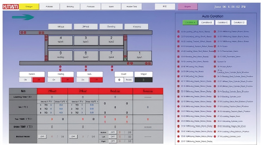 設(shè)備有故障報(bào)警功能,觸摸屏顯示報(bào)警狀態(tài),PLC 輸出蜂鳴器提示。