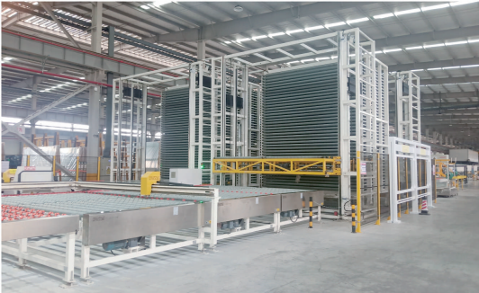 智能原片穿梭倉(cāng)儲(chǔ)系統(tǒng)--切割打碼一體機(jī)--水平理片臺(tái)--雙邊磨--清洗機(jī)--鋼化爐-- 立式理片系統(tǒng)--中空線--中空玻璃成品智能倉(cāng)儲(chǔ)系統(tǒng)