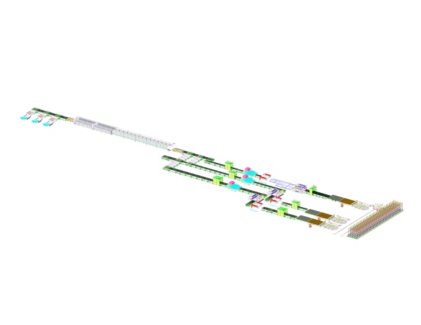 Glass storage shuttle system--Cutting &Laser marking machine--Horizontal sorting table--Double edger--Washing machine--Tempering furnace--Vertical sorting buffer- IG line--IGU glass storage shuttle system
