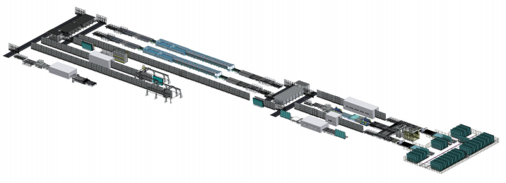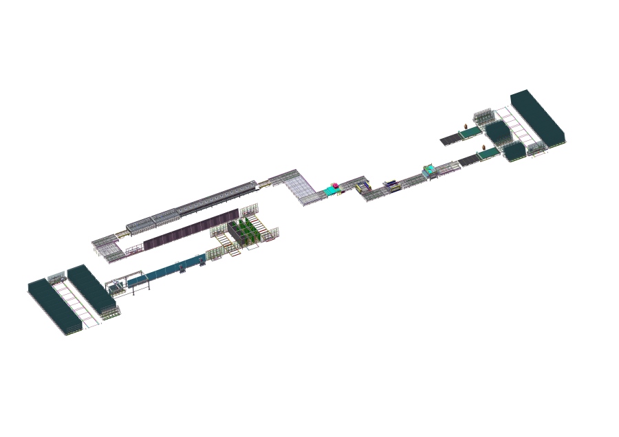 Horizontal sorting table--Double edger--Washing machine--Horizontal sorting buffer- Tempering furnace--Vertical sorting buffer--IG line--Gantry unloading-IGU glass storage system